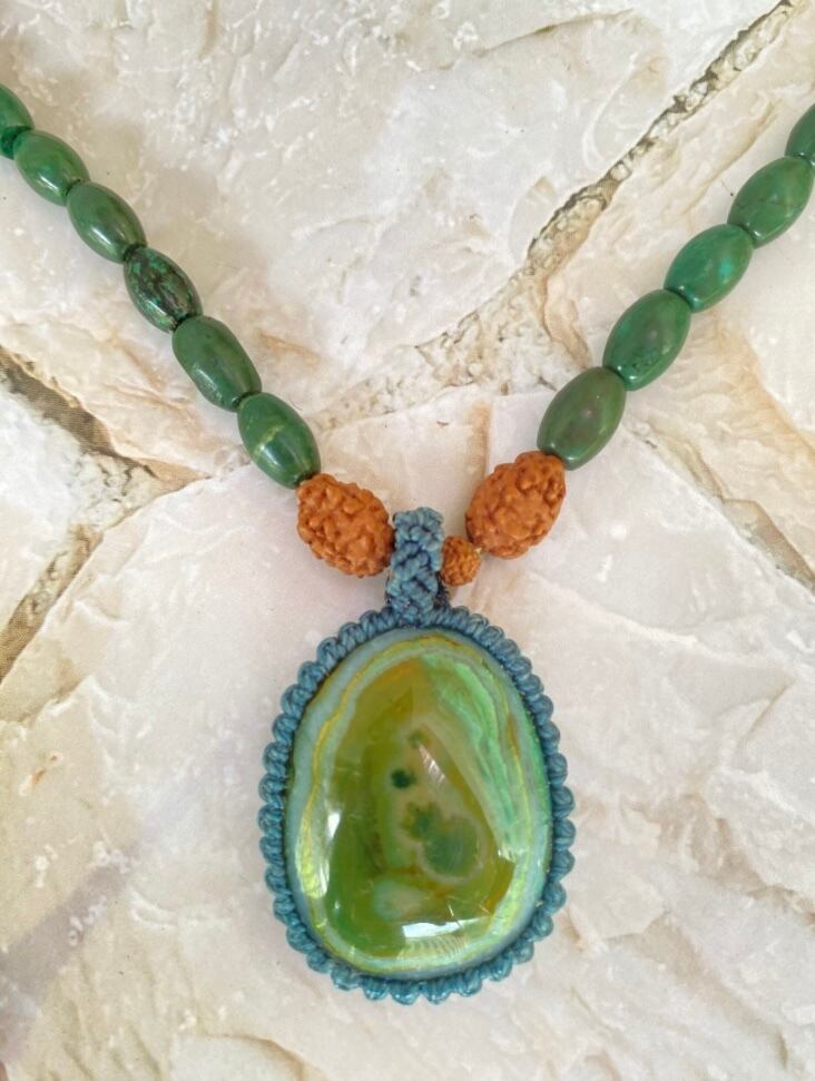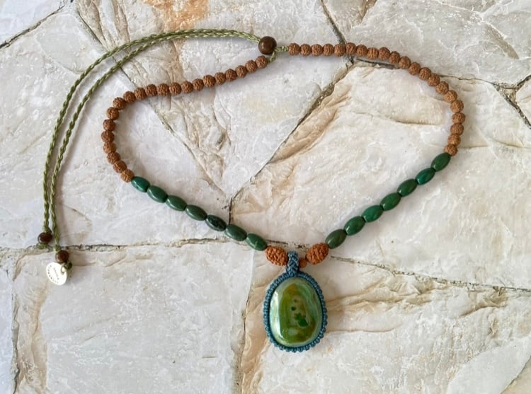 インドネシア産アゲートの1点物マクラメネックレスです。