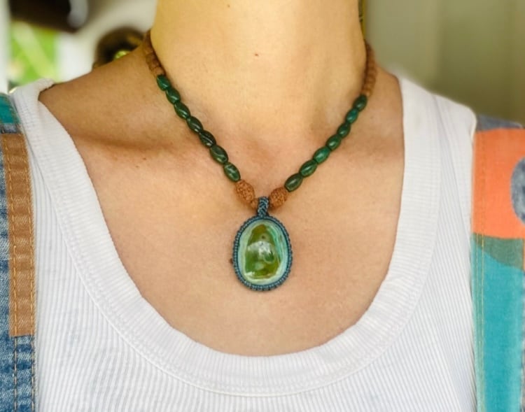 マクラメ技法で丁寧に手編みされたこのネックレスは、まさに“森の祝福”を受け取るような、やさしいエネルギーを感じられる一品です。