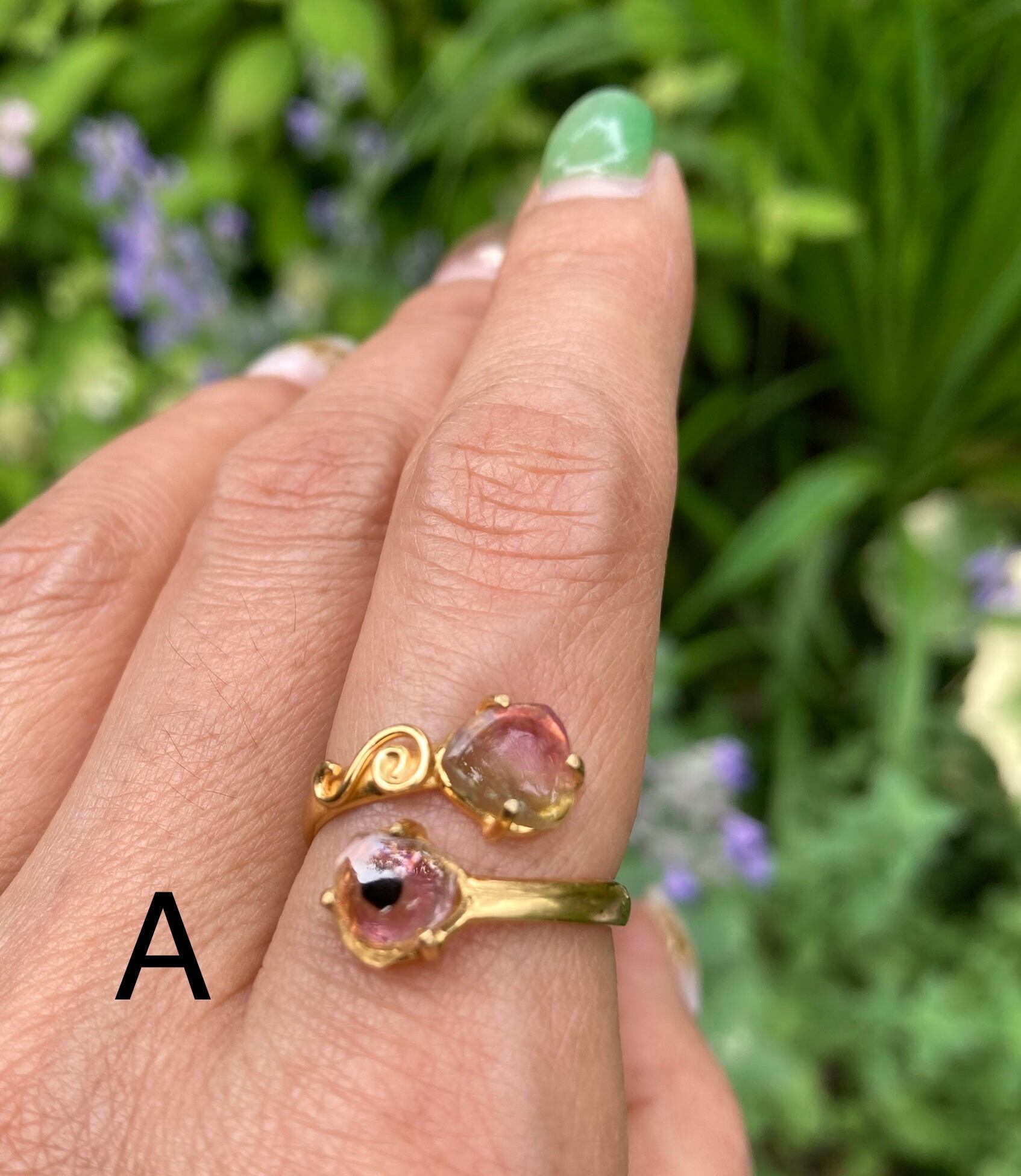 スライスカットした『ウォーターメロントルマリン』をダブルで使用したリングです。