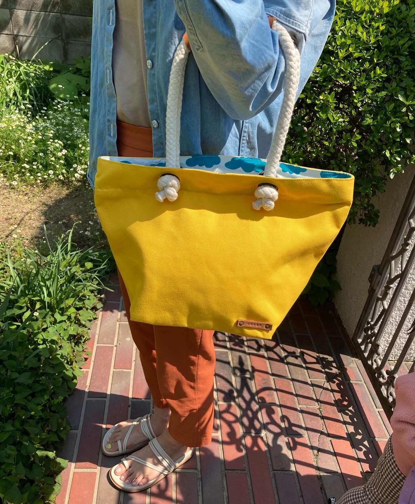 黄色のコットンキャンバス*モダンバティック(雲がら)nananバッグ